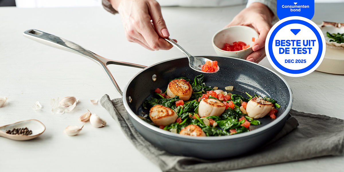 Voor een maximale levensduur van je pan kunnen we het gebruik van siliconen of houten keukenhulpjes warm aanbevelen.