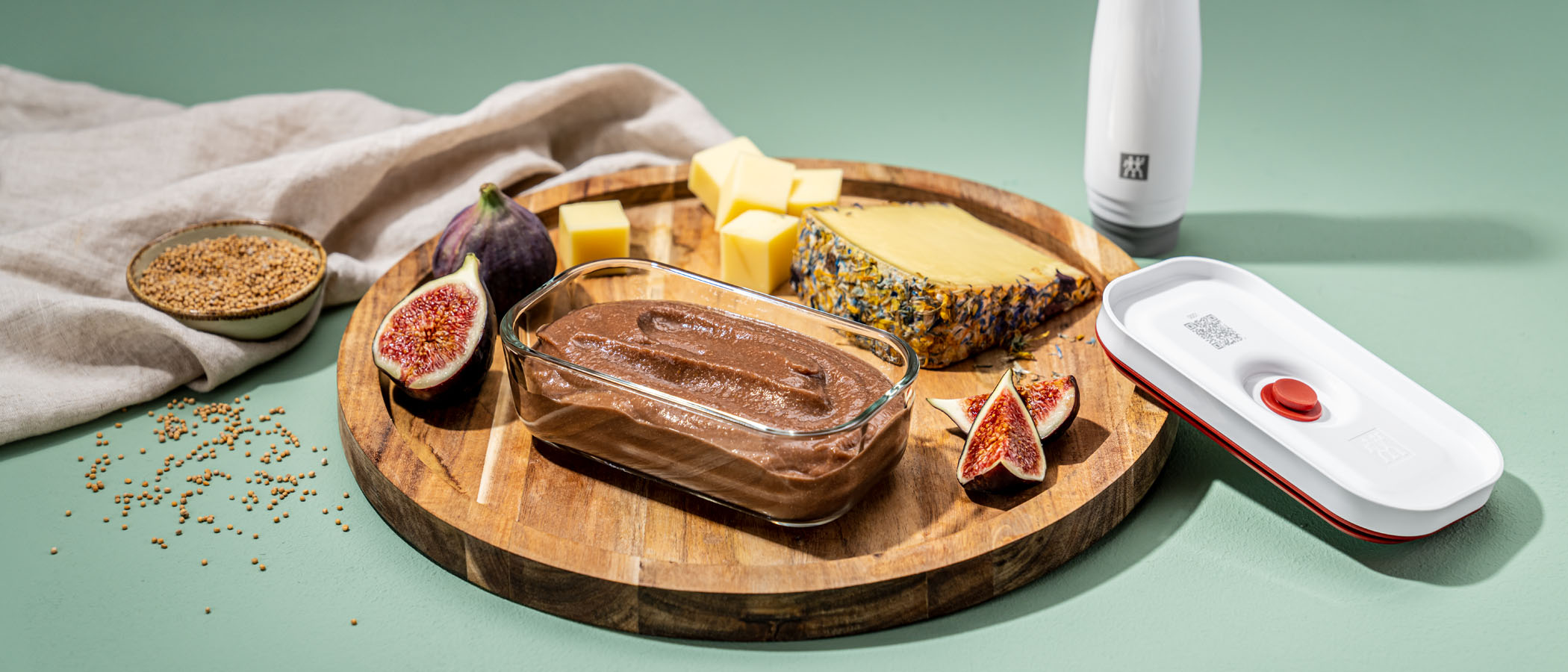 - Doe de Obatzter in een glazen FRESH & SAVE Pot M, trek vacuüm en laat minstens 1 uur trekken in de koelkast.