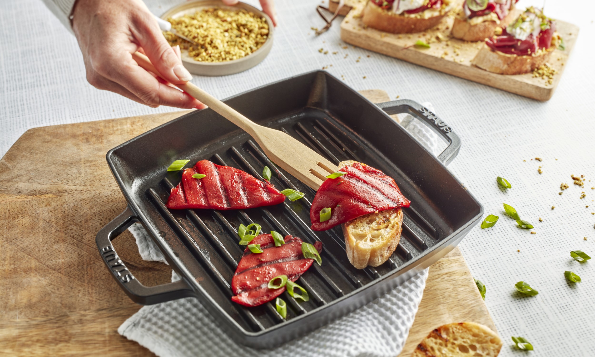 - Grill de broodjes kort langs de binnenkant.