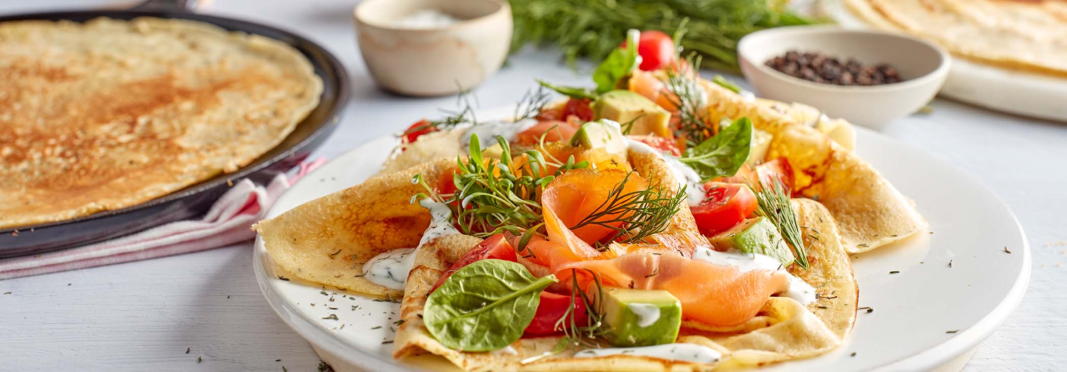 - Neem je Demeyere pannenkoekenpan en breng ze op temperatuur. Vet in met een beetje boter of bakmagarine en bak je pannenkoeken.