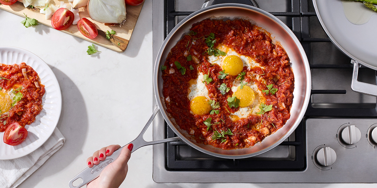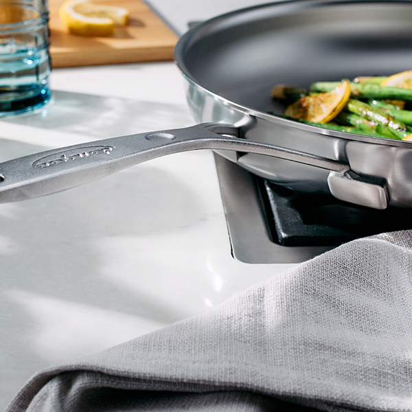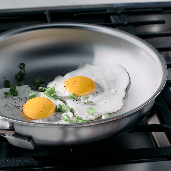 This 11-inch stainless-steel fry pan is perfect for browning chicken, stir-frying veggies, and cooking one-pan meals on the stovetop and in the oven.