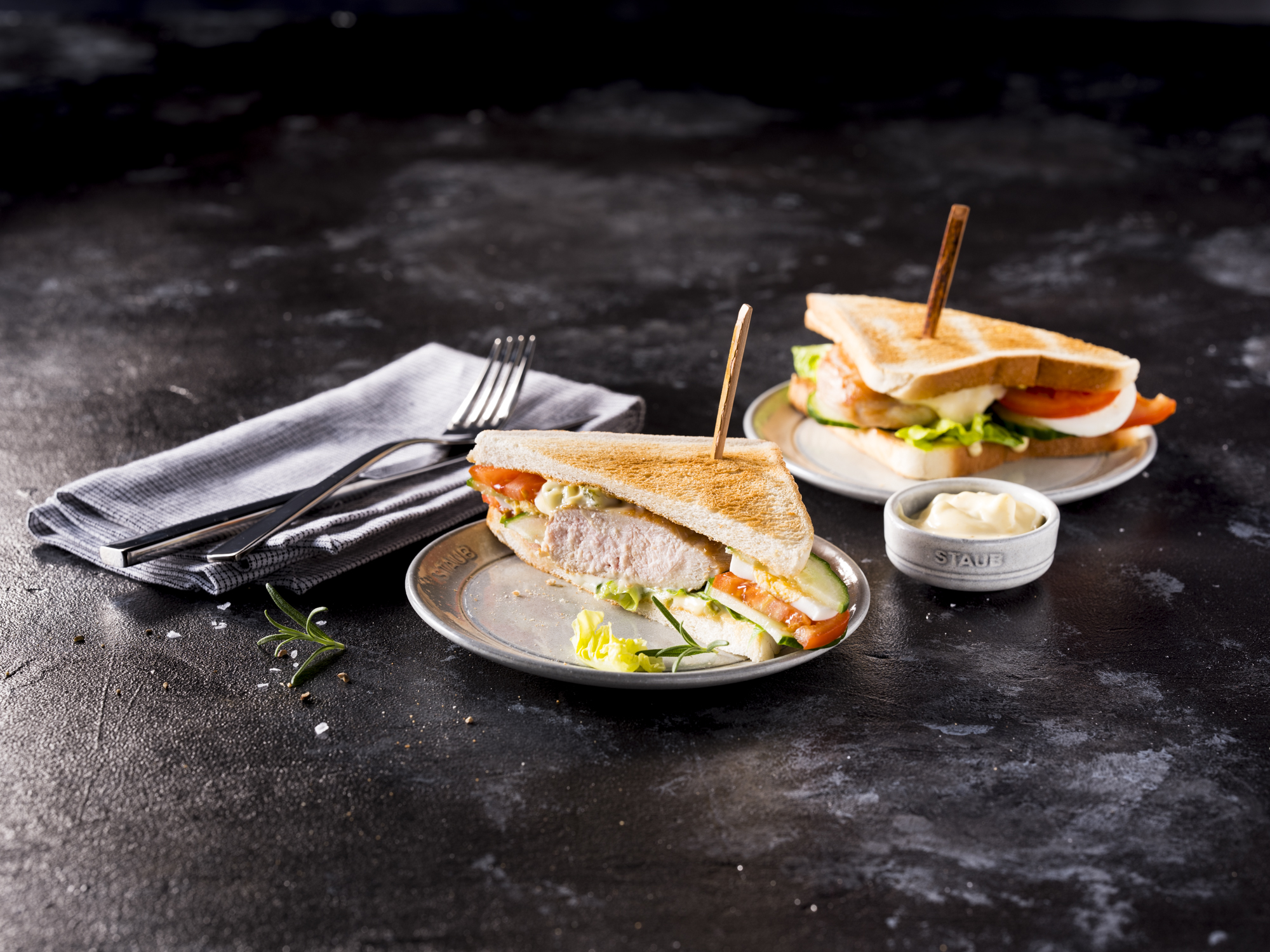 4. Place lettuce leaves on half the slices of toast and spread the vegetable and soft cheese mixture on top. Garnish with slices of radish. Cut the cress with scissors, distribute it over the radish slices and place the remaining slices of toast on top to close each sandwich.