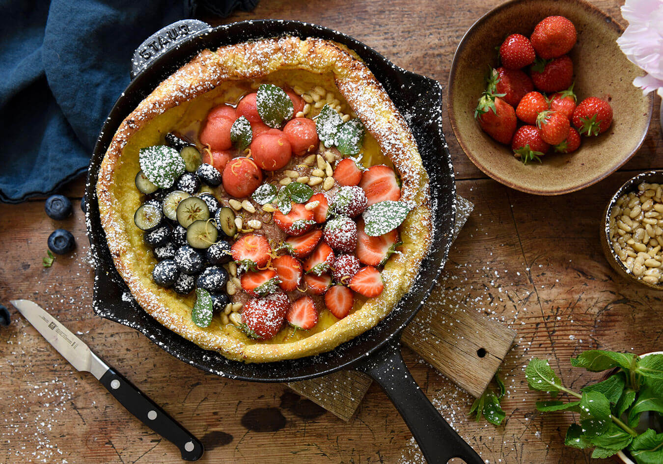 Wash the blueberries in a sieve under cold running water and drain. Rinse the grapes under cold running water, pluck them from the stalk and drain. Arrange the fruits in the oval bowl.