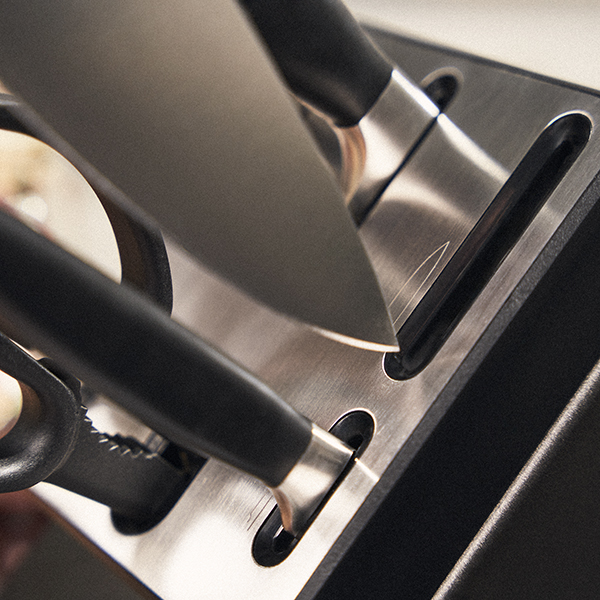 Every cutting tool has its place in the self-sharpening knife block. Easy to reach at the right angle, the blade safely concealed, an ideal place for your favorite knives. So you can store them properly and enjoy them for longer.
