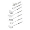 • Set includes: Soup Ladle, Wok Turner, Slotted Spatula, Serving Spoon, Tongs, Whisk, Pasta Spoon