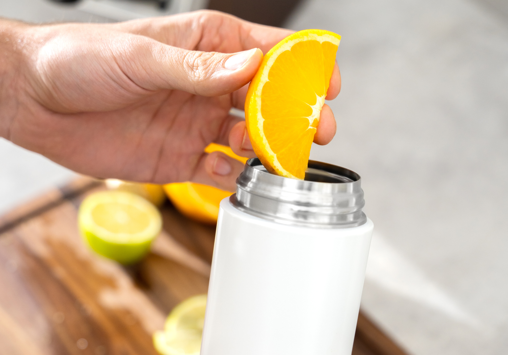 Die vorbereiteten Zutaten in die THERMO Isolierflasche für Tee & Infused Water geben. Das Wasser in einem Wasserkocher aufkochen und über die Zutaten in die Isolierflasche gießen. Ziehen lassen und nach Belieben mit Honig süßen und genießen.