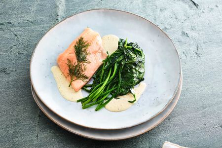 - Nach Belieben den Lachs in einer heißen Pfanne in Öl von allen Seiten braten. Zum Servieren mit Salz und Pfeffer würzen.