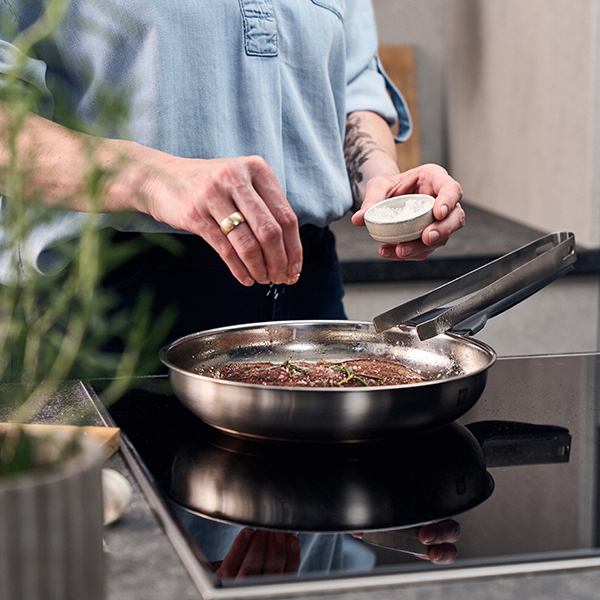 Ideal zum scharfen Anbraten von unpaniertem Fleisch, z. B. Steak
