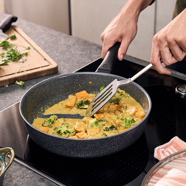 Ideal zum fettarmen, schonenden Braten von Fisch und Gemüse sowie Schmoren von Pfannengerichten