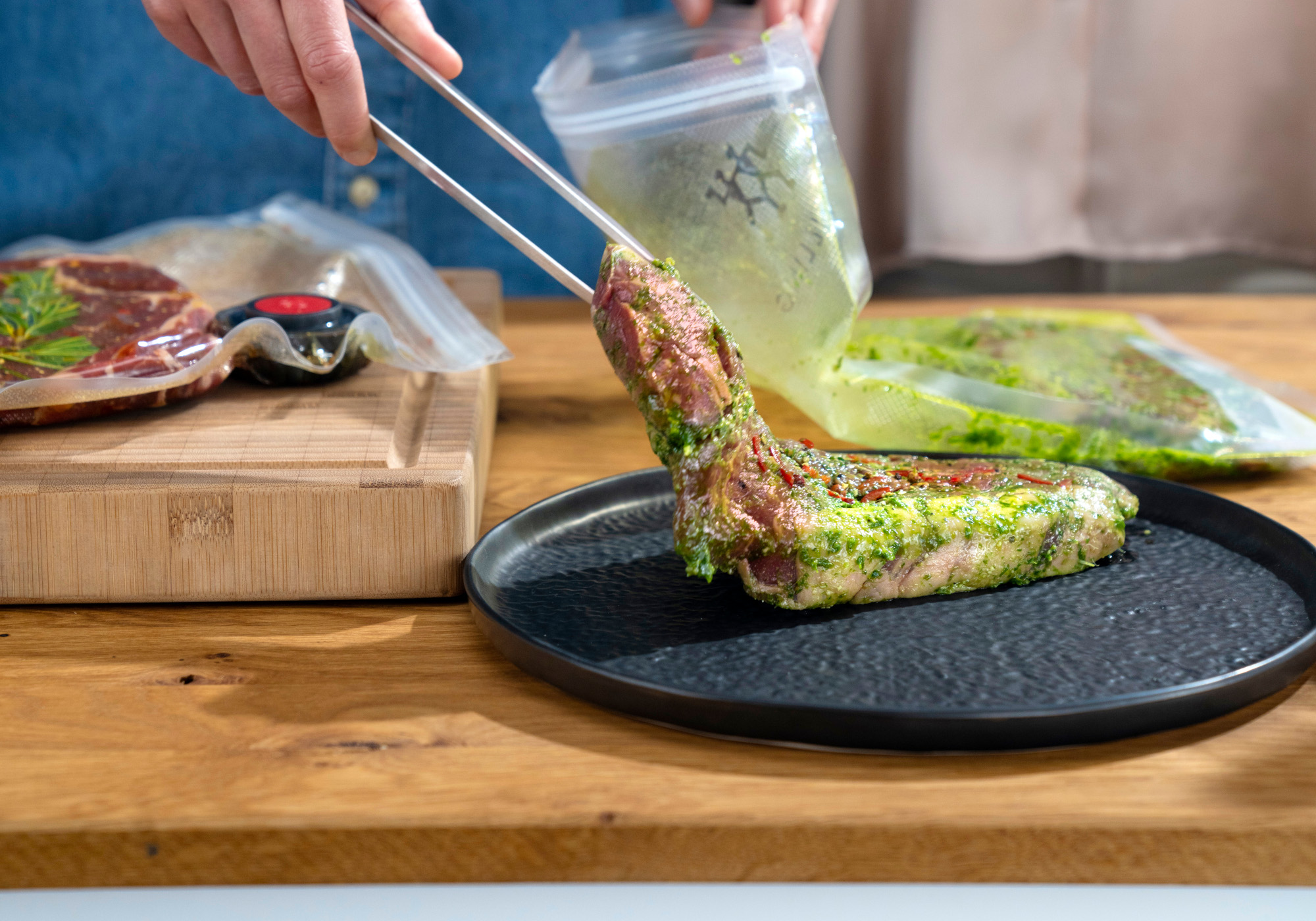 Leftover burger patties can be vacuum-packed and frozen in FRESH & SAVE bags. The convenient resealable bags mean patties can be taken out of their bag one at a time and the bag then re-vacuumed and returned to the freezer.