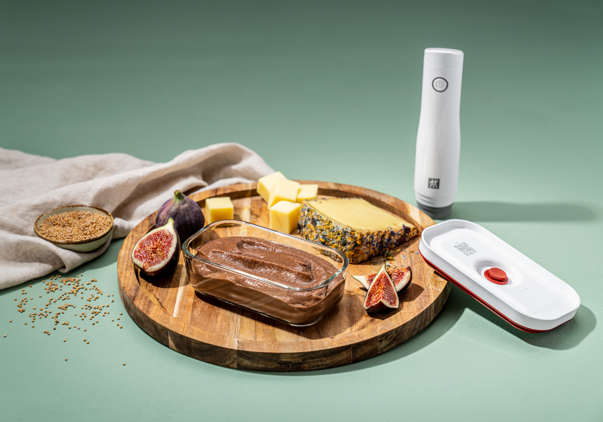 Placer la viande dans un sac sous vide adapté, par exemple le Sac FRESH & SAVE M de ZWILLING, en repliant l'ouverture du sac pour que la bande de fermeture ne soit pas salie lors du remplissage. Insérer le filtre anti-liquide, fermer le sac et le mettre sous vide.