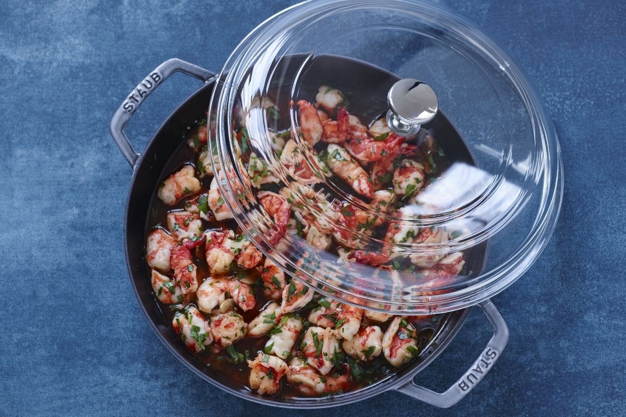 - Couper le poulet en deux et ajouter dans une cocotte : le bouillon de poulet, les herbes aromatiques et les épices. Porter à ébullition, puis couvrir et laisser mijoter à feu doux-moyen pendant environ 60 minutes.