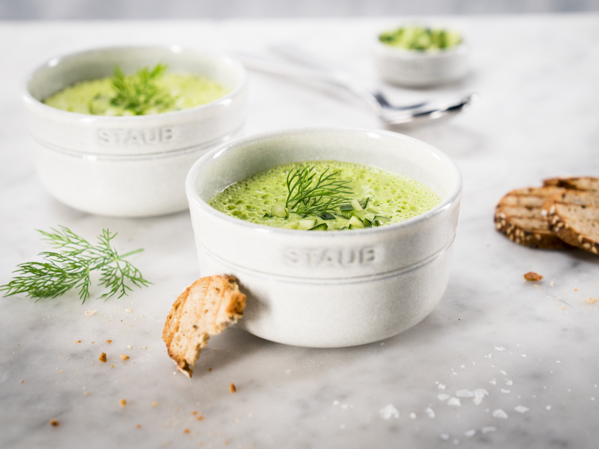 - Beurrer généreusement les trous de 2 poêlons à escargots STAUB. Couper les tranches de bacon en deux en biais et les déposer dans chaque trou.