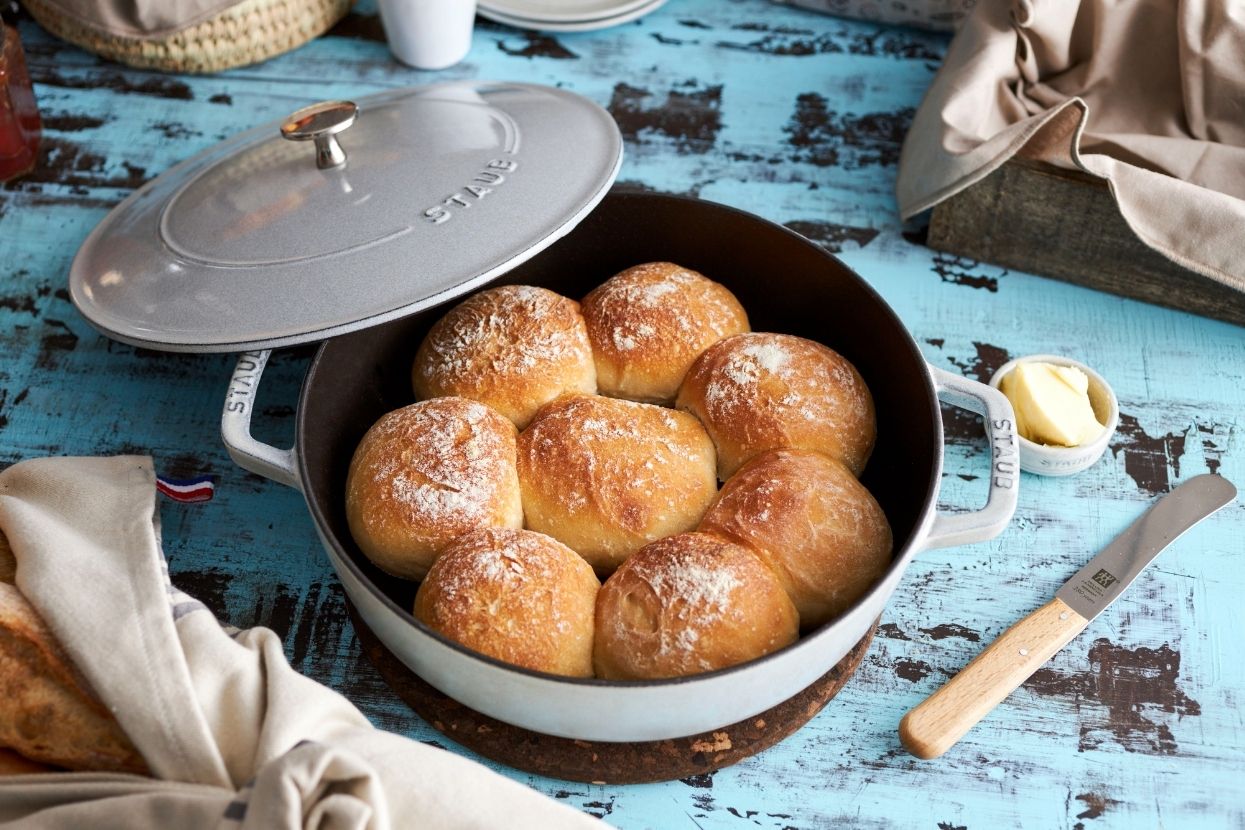 - Répartir le mélange de crème fraîche dans les quatre poêles. Disposer les tranches de pommes, avec le bord de la peau vers le haut, en les décalant pour créer une sorte de pétale de rose, de l'extérieur vers l'intérieur. Saupoudrer de sucre et faire cuire au four pendant 30-35 minutes. Retirer et laisser refroidir pendant 10 minutes. Ensuite, retirer les petites tartes aux pommes des poêles émaillées et les servir encore chaudes.