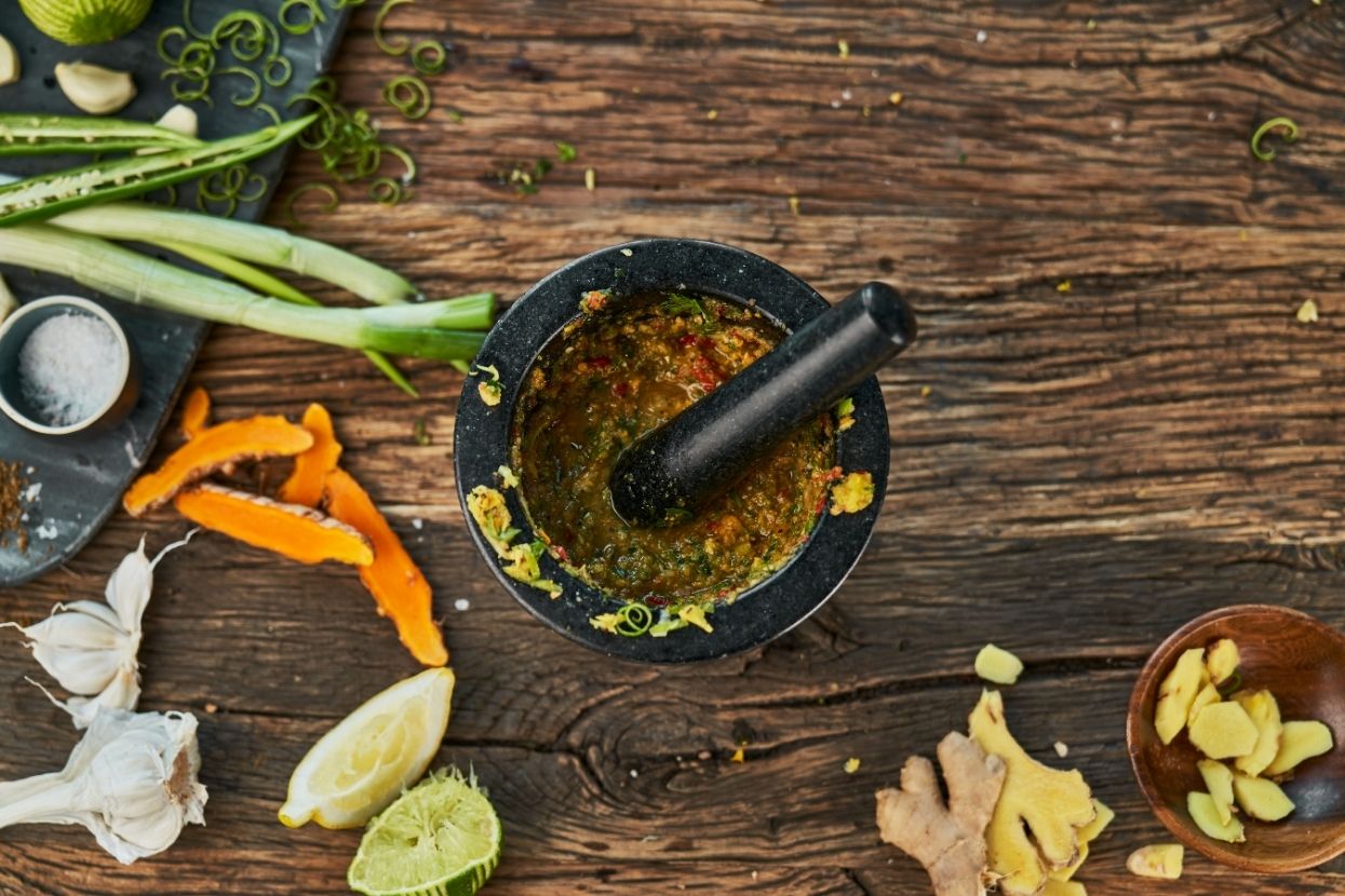 - Pour le dressage : peler et couper finement l’ail et le gingembre. Couper la ciboule en petites rondelles et mélanger avec les autres ingrédients du dressage. Laisser mariner le dressage environ 30 minutes.