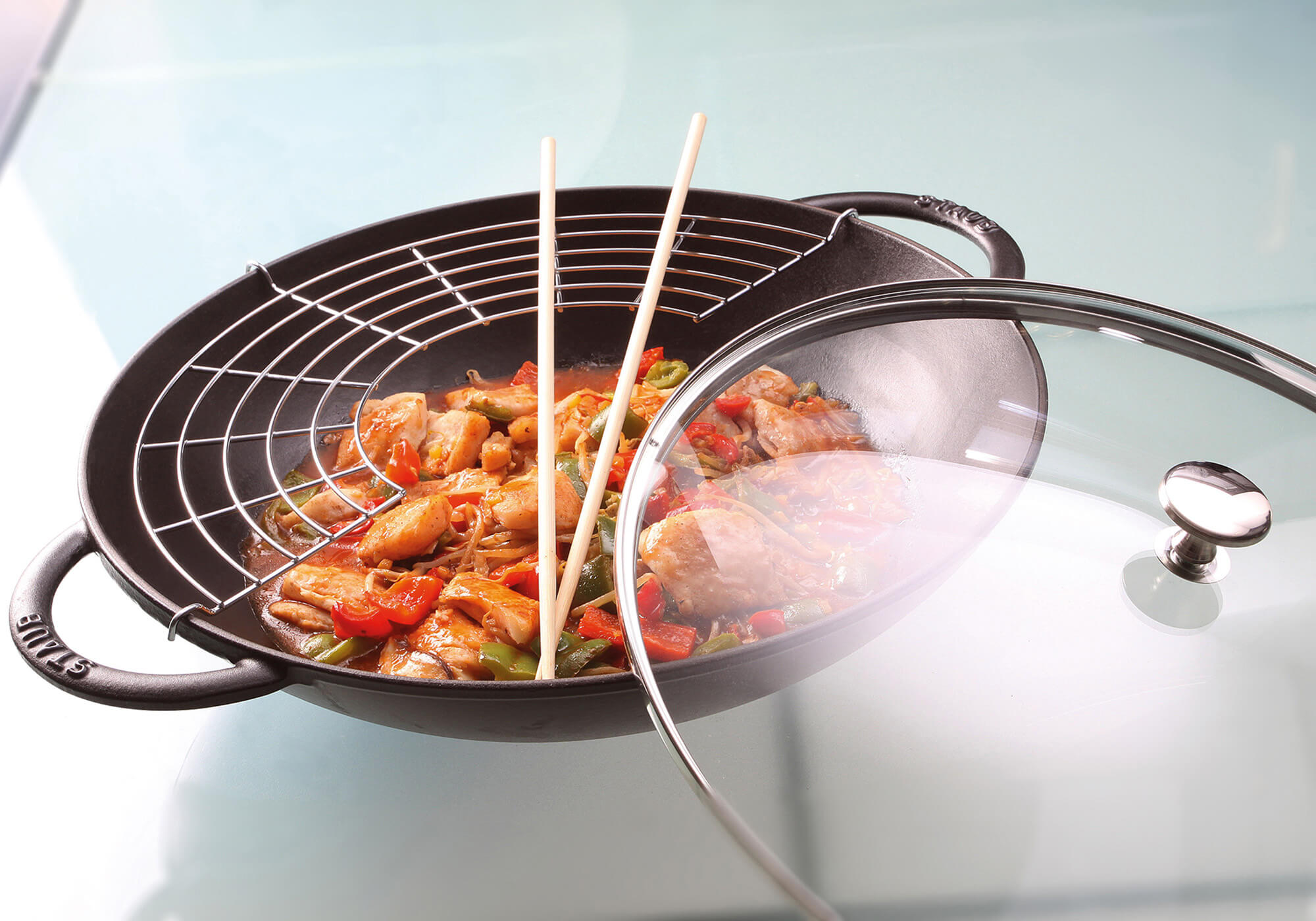 - Couper finement le tofu. Faire chauffer un filet d’huile, faire frire le tofu de chaque côté jusqu’à qu’il soit croustillant et doré. Déglacer à la sauce teriyaki et réserver. Laver les légumes. Couper en brunoise les courgettes et frire dans un wok chaud avec un filet d’huile jusqu’à qu’elles soient croustillantes.