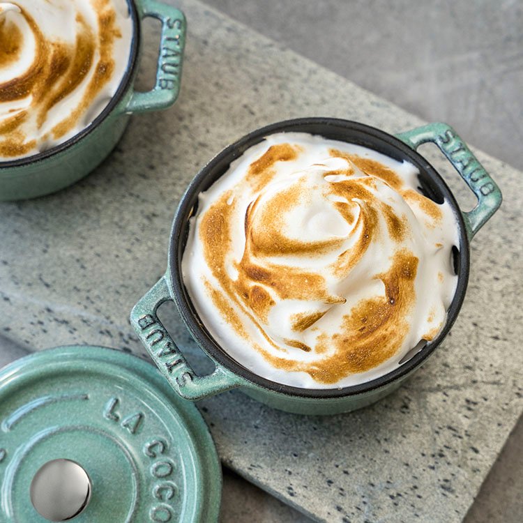 En portions individuelles, servez un délicieux gratin de légumes à chacun de vos convives dans la mini cocotte, ou bien, pour une ambiance ton sur ton, amusez-vous à recréer la couleur avec un parfait au basilic. La cocotte en fonte peut être utilisée au four et sur tous types de plaques de cuisson, y compris l'induction. Elle résiste à la chaleur jusqu'à 250°C et peut même aller au congélateur (max. -20°C) pour des petits plaisirs d'été rafraîchissants.