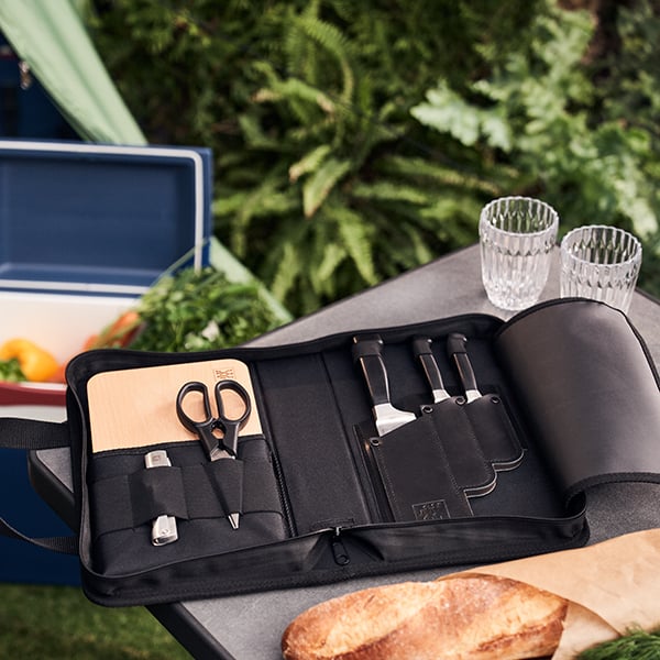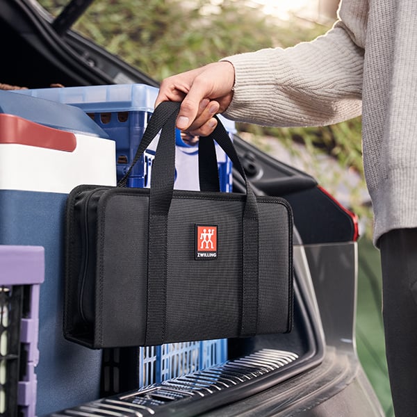 Où que tu allies, ce set t’accompagne ! Tu as tout ce dont tu as besoin dans ta cuisine. Le ZWILLING Traveller Set convient parfaitement aux camping-cars, tentes et pique-niques ! Plie bagages et emporte le set : Tout y est, tout est à sa place, bien protégé et bien rangé. L’élégant sac se glisse facilement dans le tiroir de cuisine du camping-car ou dans le panier de pique-nique, et une fois ouvert, ton aventure culinaire débute où que tu ailles.