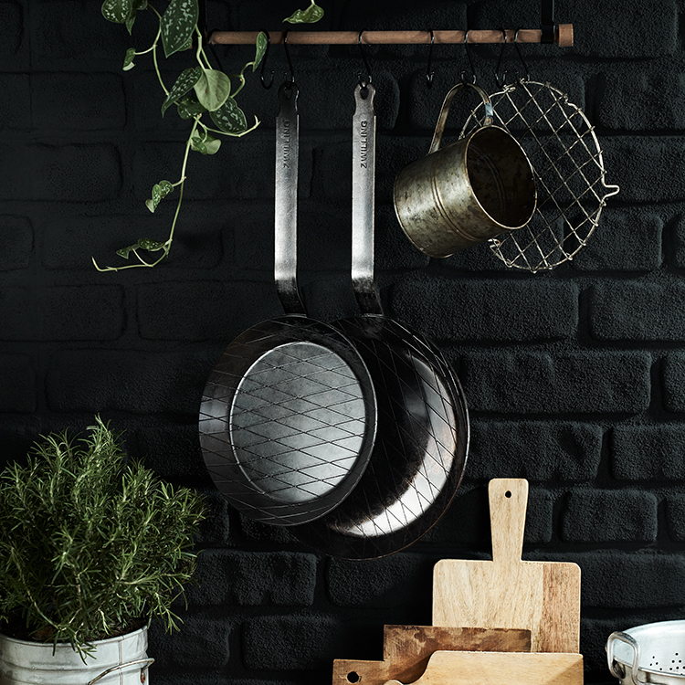 La poêle en fer forgé de ZWILLING vous offre de toutes nouvelles possibilités de cuisson. Utilisée correctement, cette poêle de 24 cm de diamètre est idéale pour griller et saisir à feu vif. À vous les pommes de terre croustillantes, les steaks fondants et les légumes braisés à la perfection ! Mais avant de commencer à utiliser votre nouvel accessoire, il vous faudra le préparer. Lors du déballage, vous remarquerez sûrement la présence d’un film d’huile protectrice sur la poêle. Celui-ci se rince facilement avec un peu d’eau et du détergent. L’étape suivante consiste à culotter la poêle. Elle peut se réaliser sur tous les types de feu, mais également sur un barbecue ou dans un four à 250 °C. Pour cela, versez un peu d’huile au fond de la poêle et faites-la chauffer à feu moyen. La cuisson entraîne la formation d’une couche protectrice naturelle. Cette patine s’améliore au fil des cuissons et empêche vos aliments d’adhérer au fond de la poêle. Avec le temps, vous utiliserez de moins en moins d’huile, pour une cuisine saine et savoureuse. Le culottage donne à la poêle une couleur cuivrée, voire noire. Pour conserver cette patine, il vous faudra nettoyer la poêle en fer avec de l’eau chaude et une éponge non abrasive. Un autre avantage de la poêle en fer forgé ZWILLING : la structure en losange. Présente sur le fond épais en fer, elle intensifie le goût des aliments et permet de bien répartir la chaleur. Ainsi, le fond ne se déforme pas, même à haute température. La poêle en fer est idéale pour saisir de la viande ou griller des légumes. Comme la poignée chauffe également durant la cuisson, attrapez-la toujours avec une manique. La poêle en fer convient à l’induction, mais aussi à tous les autres types de feux, au gril et au four.