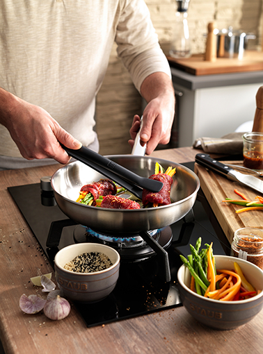 Persino alle alte temperature, il manico in acciaio inossidabile della padella rimane freddo e assicura una presa confortevole.