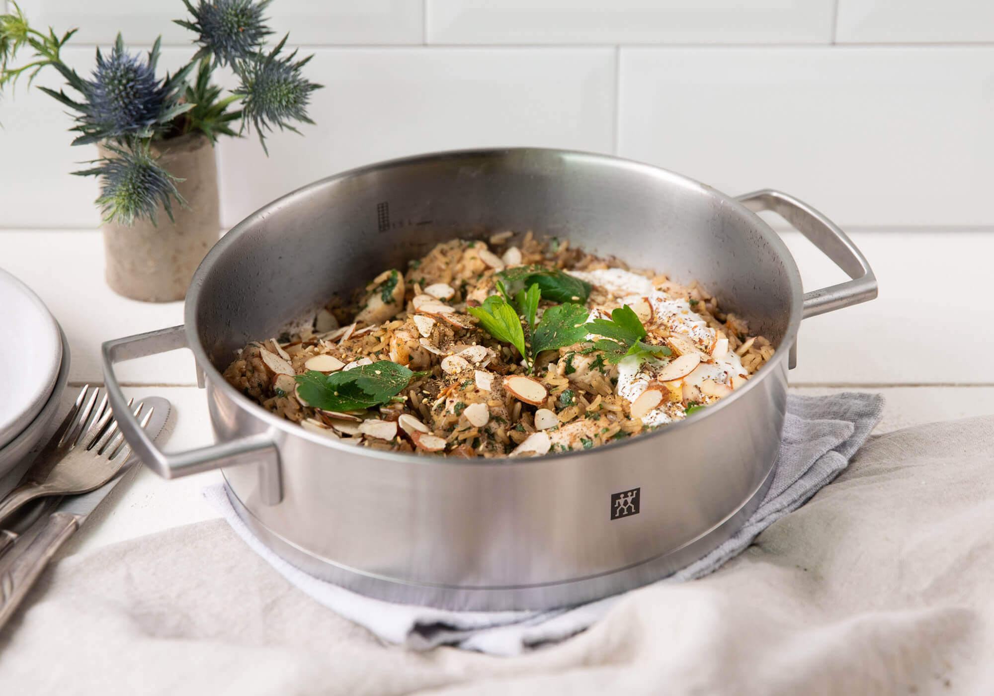 - Arrotolare ben stretto l’impasto di pasta fillo, iniziando dal lato di riempimento. Trasferire su un foglio di carta da forno e ripetere la procedura altre due volte. Spennellare il burro rimanente sui rotoli di pasta fillo, infornare la baklava a 180°C/350°F e cuocere per circa 15-20 minuti, fino a quando saranno dorati.