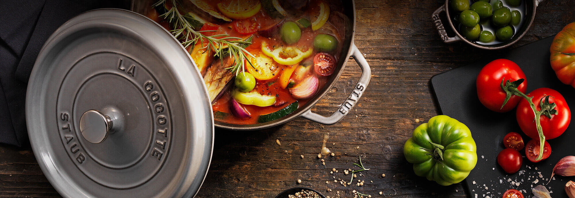 Cucinare "en cocotte" è un ottimo modo per utilizzare ingredienti freschi nella preparazione di deliziosi pasti in famiglia. Una cocotte STAUB non è solo una pentola per arrosti: apre un mondo di infinite possibilità culinarie. Con un po' di creatività e pratica nell'utilizzo della ghisa, diventerà presto un elemento essenziale nella tua cucina.