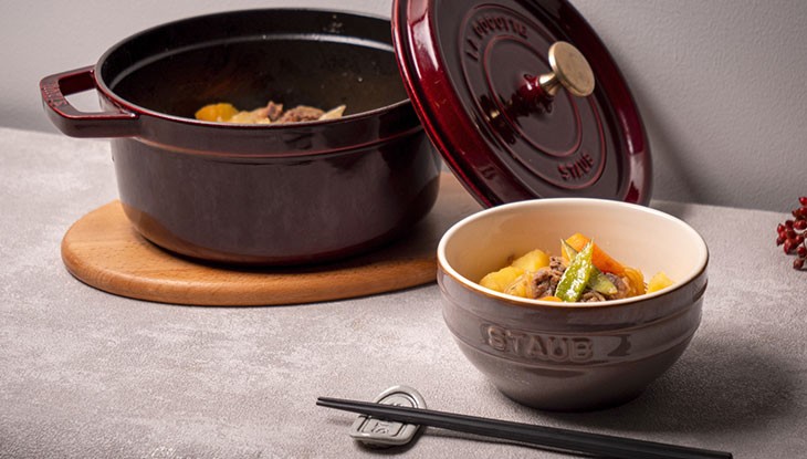 ストウブで作る「きのこと鶏の無水・塩麹蒸し」