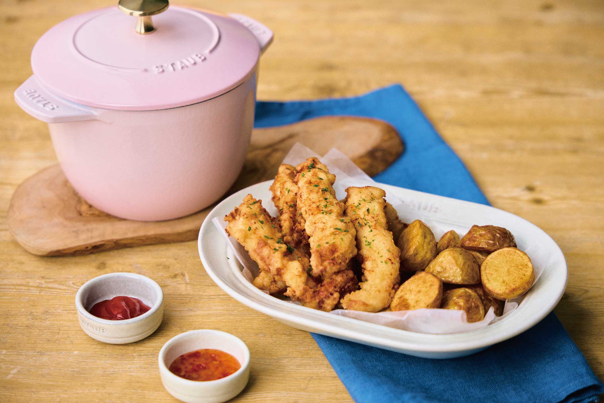 卵の代わりにマヨネーズを使うことで、衣(ころも) 作りのハードルを下げ、さっくりと揚がります。小麦粉に少量の片栗粉を加えることで、軽い食感に。