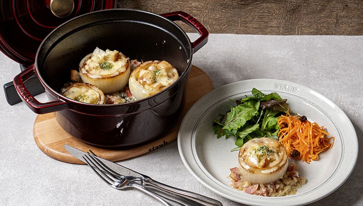 ストウブで作る「グラタン風 丸ごと玉ねぎの無水ロースト」