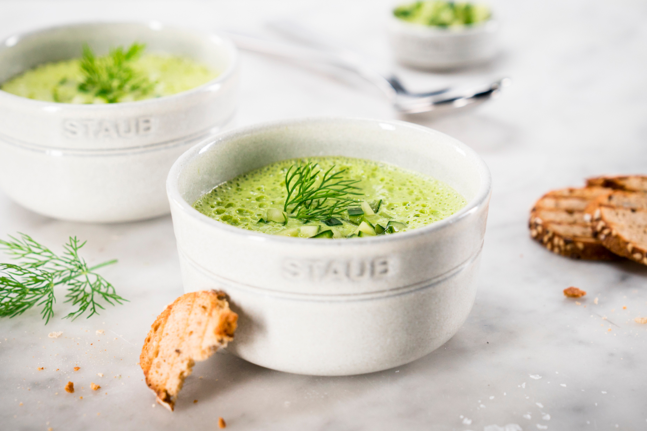 - プログラムが完了したら、蓋を外し、味を調えます。器に移し、パンプキンシードオイルとかぼちゃの種で飾り付けて完成です。バゲットと一緒にお召し上がりください。