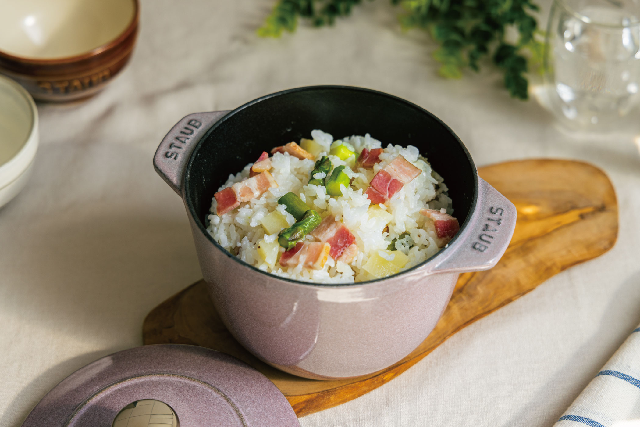 - 火を止めたら、いったん蓋を開けて銀杏を加え、再度蓋をして蒸らす(10分)。茶碗によそい、万能ネギを添える。