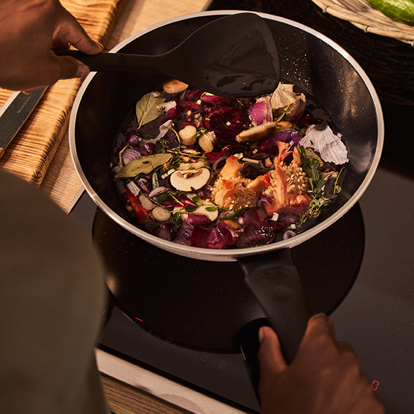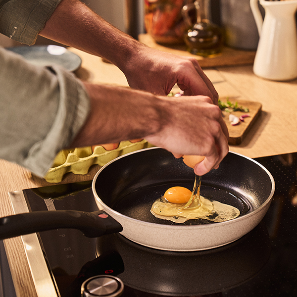 Finding the perfect temperature is easy. The Thermopoint heat indicator turns red when the pan is hot. And thanks to the CERAFORCE Black ceramic coating, nothing sticks to the base.