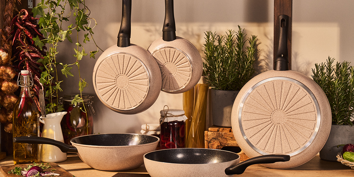 Fry more consciously: The BALLARINI Ledro pans are made from more sustainable materials: 100% recycled aluminum* in the pan’s core and 37% bio-based materials in the handle. Plus a particularly durable CERAFORCE Black ceramic coating to make your pan last longer. A symbiosis of innovation and Italian design with a sand look for a more sustainable kitchen.