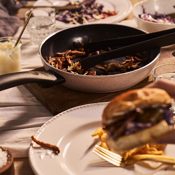 With the BALLARINI Ledro pans, you not only fry more sustainably, they can also be your start to a new diet. Try our pulled oyster mushroom burger, for example!