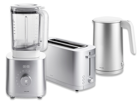 Sommige mensen vertrouwen op handenarbeid in de keuken, terwijl anderen liever moderne elektrische keukenapparatuur gebruiken. Apparatuur zoals mixers, broodroosters of waterkokers is echter al standaard geworden in de meeste moderne keukens. In de ZWILLING online winkel vindt je krachtige keukenapparatuur die jouw dagelijks leven gemakkelijker maakt en blikvangers zijn in jouw keukenlandschap met hun tijdloze ontwerp.