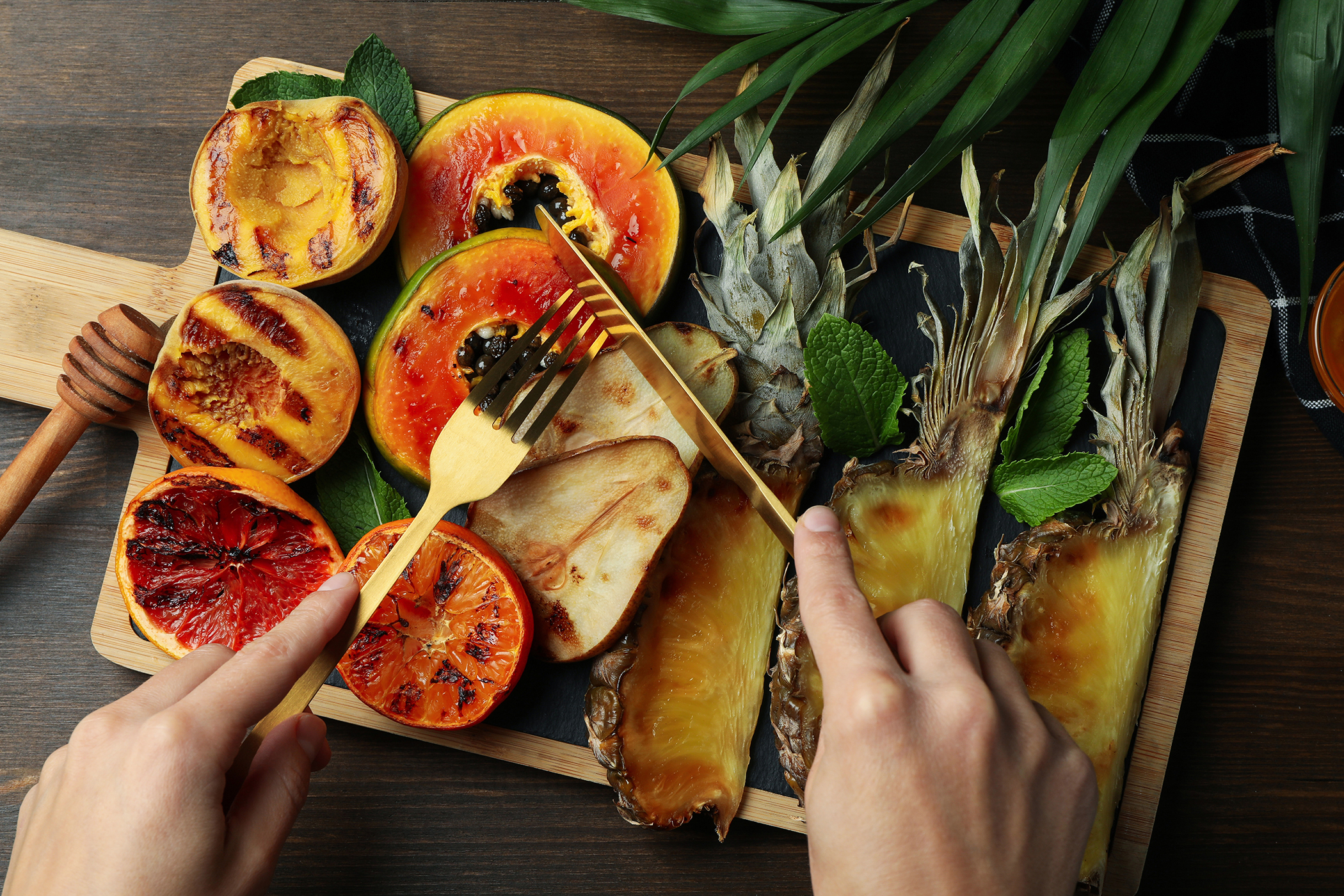 Preparados em um piscar de olhos - suculentos camarões-tigre grelhados em uma marinada quente e frutada.
