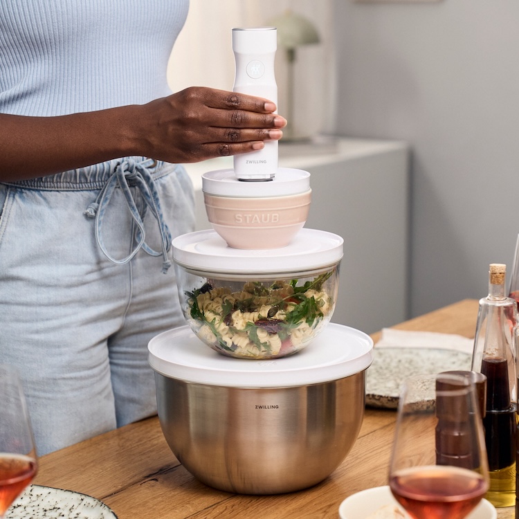 Panelas que acompanham em cada etapa: prepare, cozinhe, sirva e armazene as suas receitas favoritas com facilidade. Sinta o frescor se manter com a Bomba a Vácuo ZWILLING FRESH & SAVE—leve do fogão direto para ofrigorífico, sem precisar transferir.
