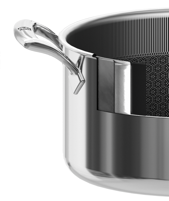 CERAFORCE HyCoat com Dual Performance: combina o conforto de um revestimento antiaderente com a durabilidade do aço inoxidável, permitindo selar a alta temperatura ou cozinhar suavemente