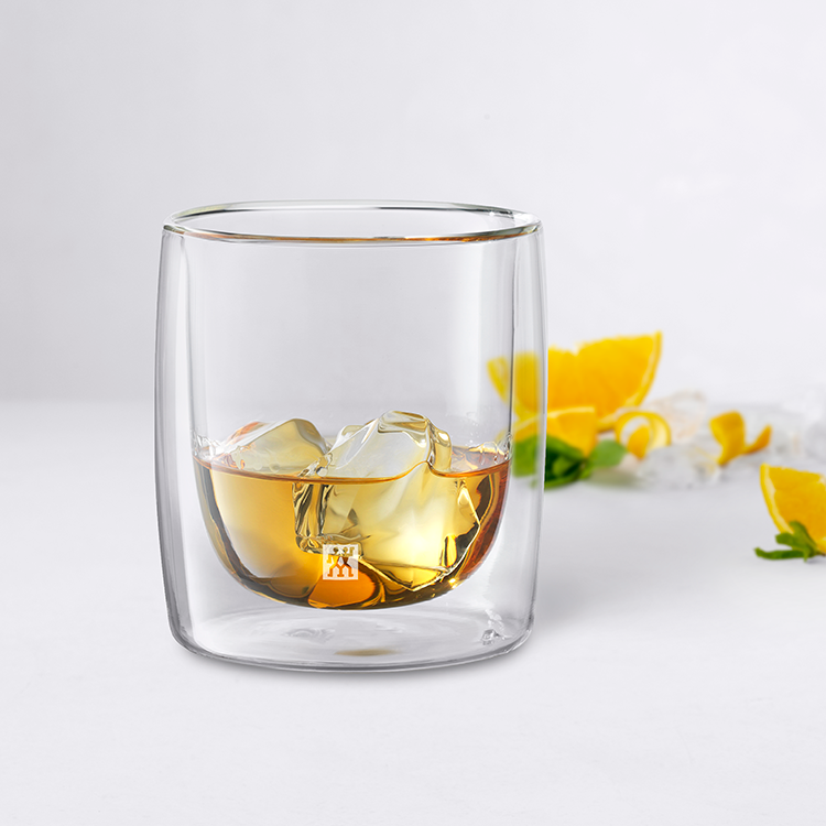 O uísque certamente deve ser apreciado à temperatura correta. Alguns consumidores preferem uma bebida fria, enquanto outros usam cubos de gelo. Desfrute dos aromas complexos que se revelam particularmente bem à temperatura ambiente (cerca de 21 graus Celsius). Quaisquer que sejam as suas preferências, com o copo de uísque de parede dupla ZWILLING Sorrento, a temperatura perfeita da sua bebida será mantida por muito tempo após servir. Isso é garantido pelo copo de whisky de parede dupla com seu efeito isolante excepcional. O vidro de borosilicato de alta qualidade torna o vidro de uísque particularmente insensível às mudanças de temperatura. Assim, o calor da sua mão ou a temperatura ambiente não serão transferidos para a bebida e poderá desfrutar do seu whisky.