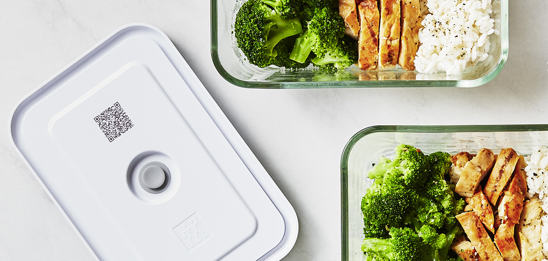 QR-koden ansluter dina lådor och påsar till appen ZWILLING Culinary World, som ger dig en överblick över din kyl och frys. Genom att skanna QR-koden på locket eller påsen kan du ansluta behållarna till appen, och på så sätt hålla koll på när matens hållbarhet tar slut så att ingen mat går till spillo. Appen kan påminna dig om när det är dags att äta någon maträtt som du har i kylen.