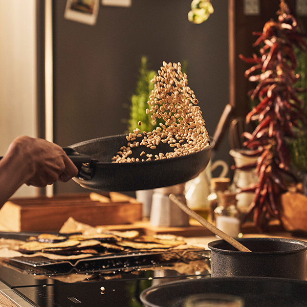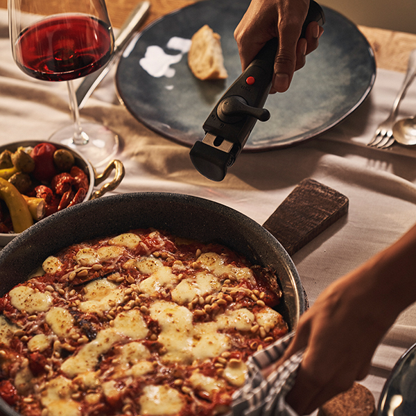 Servera maten direkt i den eleganta stekpannan på bordet – och ta sedan av handtaget. Enkelt. Elegant. Dina gäster kommer att imponeras.