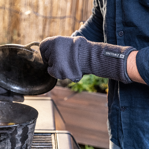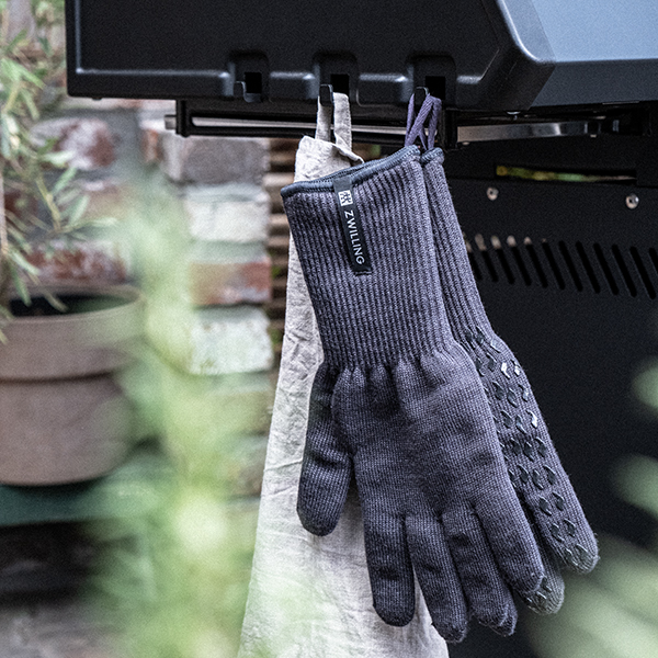 BBQ-handskarna från ZWILLING BBQ+ är tillverkade av högkvalitativa aramidfibrer och kommer garanterat att ge dig den hetaste grillglädjen. Grillhandskarna är värmebeständiga upp till 350 °C (662 °F) och upp till 500 °C (932 °F) under kortare perioder. Detta skyddar dina händer från värme och vassa kanter när du grillar och ger dig ett bra grepp om dina grillverktyg hela tiden. Grillhandskarna har också halkfria silikonkuddar på handflatorna. Det gör det enkelt och säkert att arbeta med vassa och heta grillredskap.