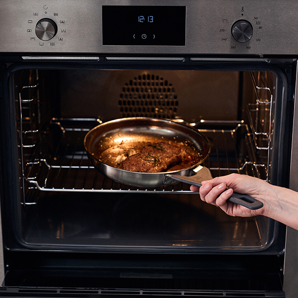 Det mjuka silikonet av hög kvalitet ser till att handtaget alltid är svalt, halkfritt och ligger säkert i handen när du steker.