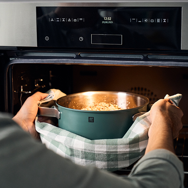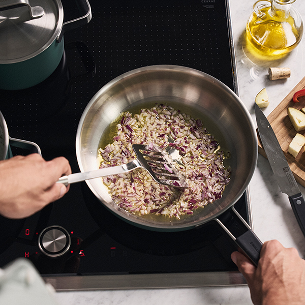 The three-layer base of the cookware distributes the heat quickly and evenly throughout the cookware. This ensures perfectly cooked, super-delicious dishes.