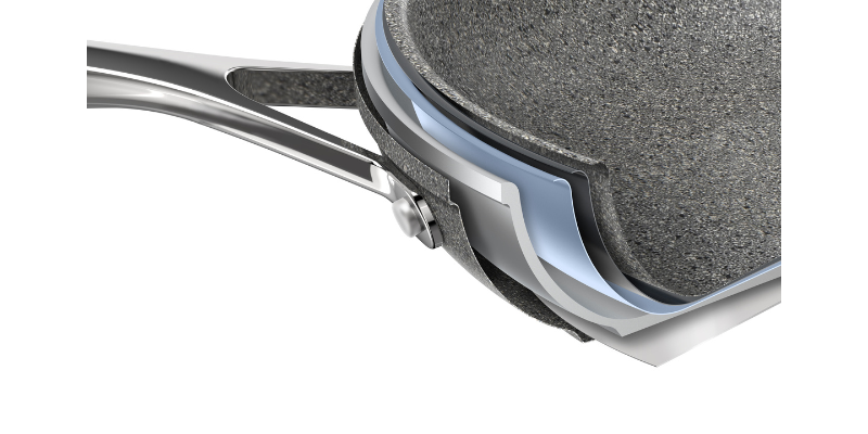 Ergonomically shaped, oven-safe stainless steel handle with a stay-cool function