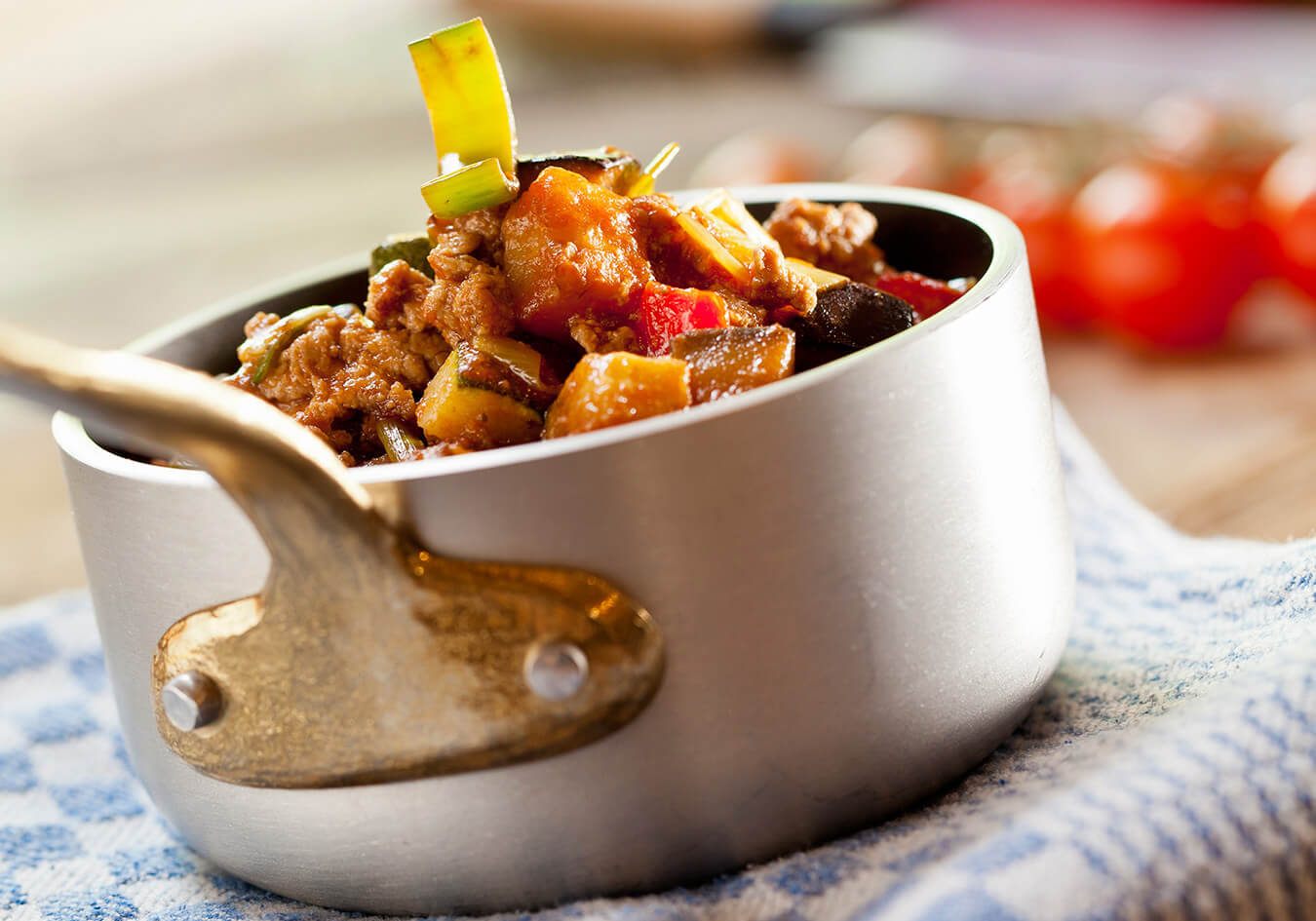 Mediterranean. Seafood stew might sound fancy, but this one couldn’t be easier to make. The recipe calls for cooked crab, as it is most readily available, but if you have access to fresh crab, by all means use it; add it with the wine to cook it through. Serve with rice, orzo, or crusty bread and, naturally, a bottle of dry rosé.