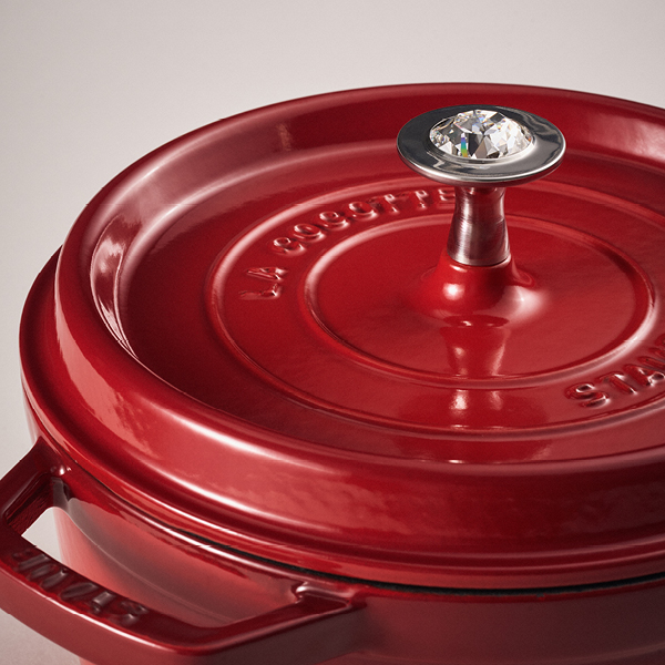 The classical STAUB knob adorned with a Swarovski® crystal: add a sparkling touch to your menu with this dazzling collectible. This unique combination artfully merges the expertise and tradition of two iconic brands into one brilliant piece of kitchen couture.