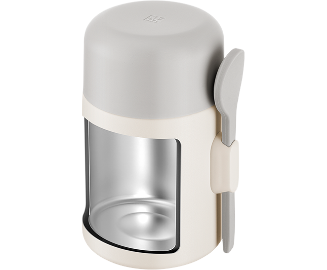 The ZWILLING THERMO PLUS Food Jar in elegant chocolate grey stylishly accompanies you throughout the day – from a warm lunch at the office to a boost while hiking or picnicking. With a generous 600 ml capacity, it holds your favorite meals and keeps them hot or cold for up to 10 hours – ideal for soups, pasta, bowls, or yogurt. Whether on the go, during your lunch break, or on an outdoor adventure: its leak-proof lid and non-slip base ensure quiet and secure placement. Lightweight, dishwasher safe, and thoughtfully designed – for stylish enjoyment, anytime and anywhere.