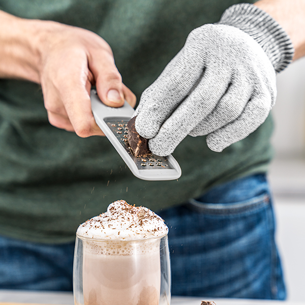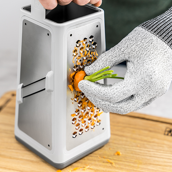 Grating has never been so easy: Our ZWILLING Z-Cut graters are multifunctional all-rounders that work particularly sharply and efficiently with their innovative Z-Cut technology and the two-way function of the blades. But it's always been important to watch out for the fingers, especially when grating small foods and the last remaining bits. Until now! The ZWILLING Z-Cut Cut Resistant Glove is  now available for increased safety in the kitchen.