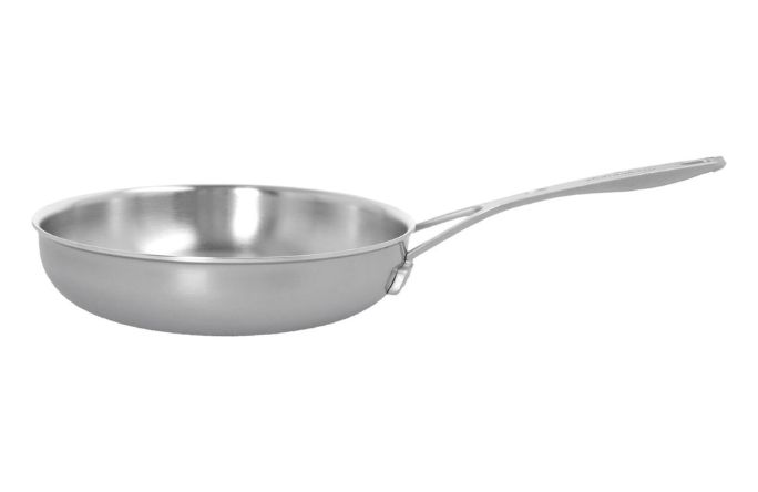 These stainless-steel fry pans with a 5-layer construction provide unparalleled frying, perfect browning, and guarantee exceptional heat distribution and retention. The 8-inch fry pan is the perfect size when prepping small batches and cooking for one. Toast breadcrumbs, scramble eggs and reheat leftovers in this small-but-mighty pan.